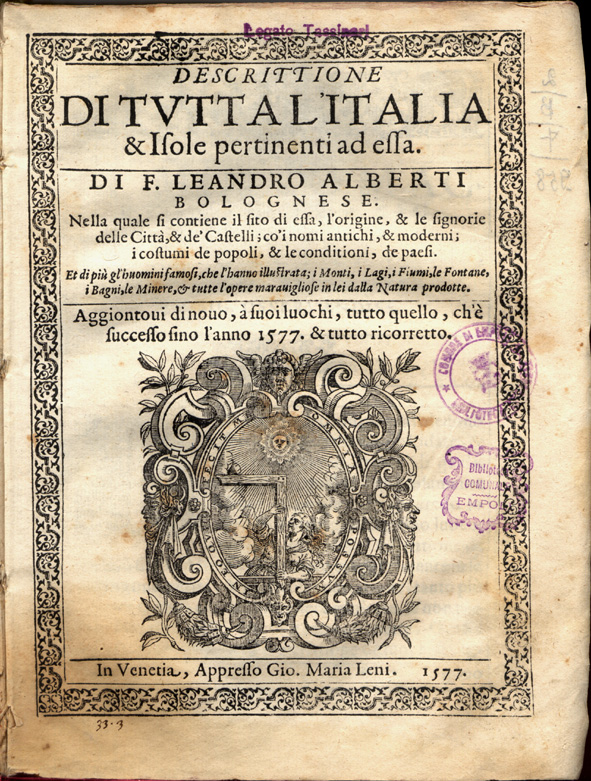 | 1553 | Descrittione di tutta Italia di f. Leandro Alberti bolognese, nella quale si contiene il sito di essa,