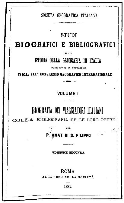 biografici e bibliografici sulla storia della geografia in Italia per P. Amat di San Filippo.