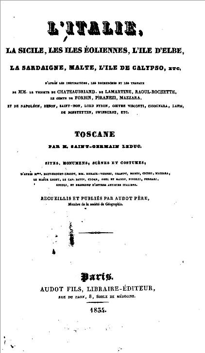 Vol. 1, Toscane, par M. Saint-Germain Leduc.Paris, Audot Fils, 1834-1837 |