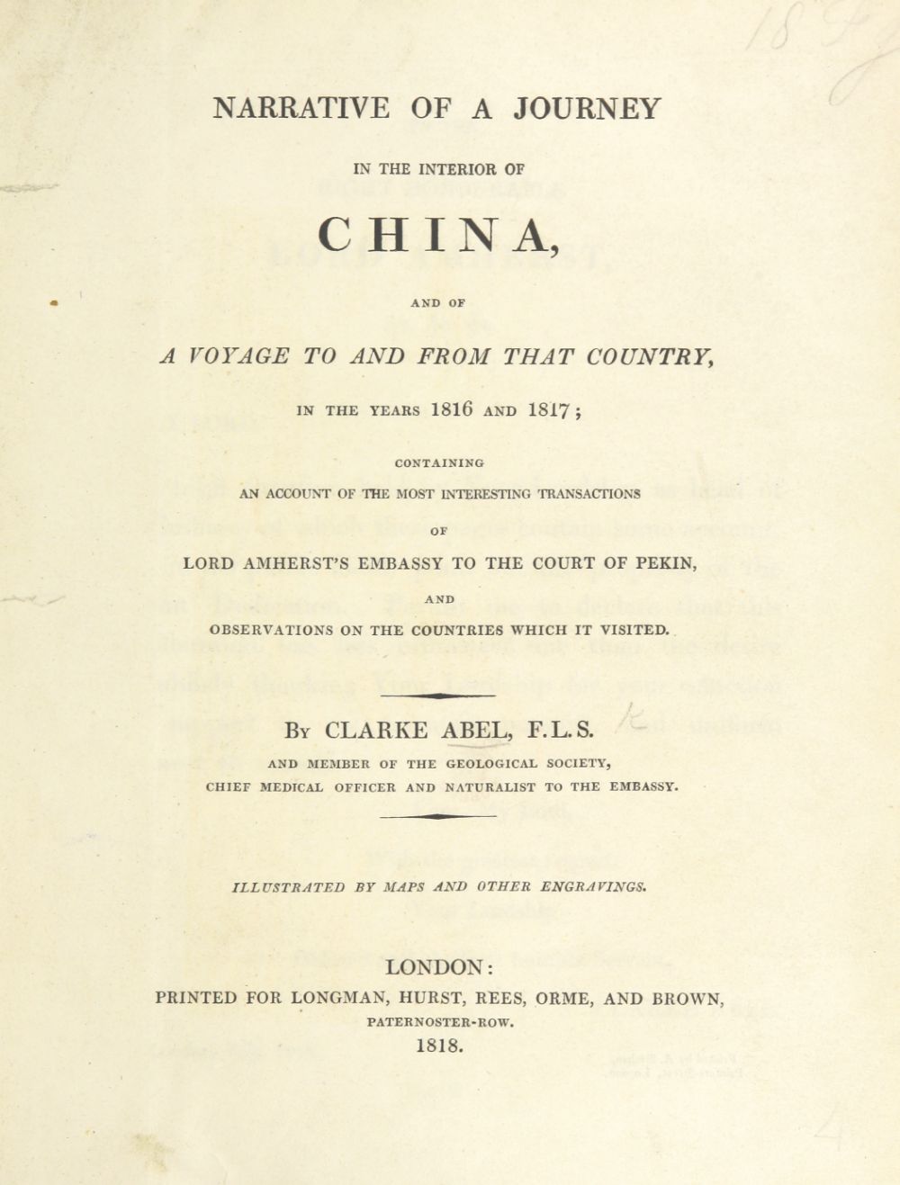 countries which it visited. By Clarke Abel, F.L.S. and member of the